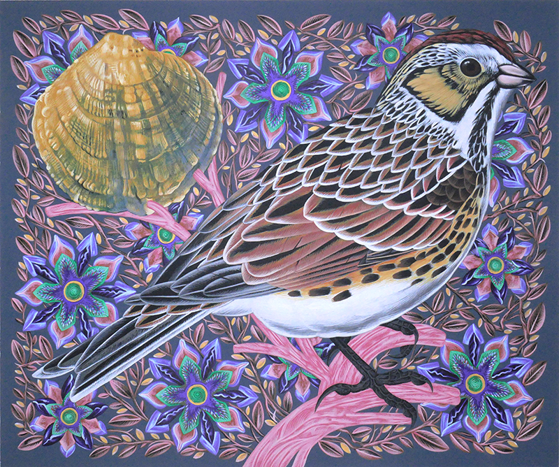 Fox Sparrow on Late Aster with Deertoe Mussel